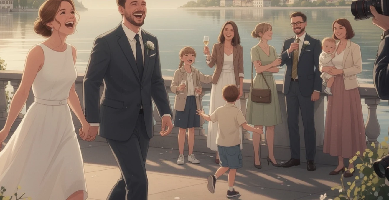 Le Lac Léman et la chaîne des Alpes offrent un décor spectaculaire qui, bien utilisé, renforce la dimension narrative du reportage photo de mariage. Plutôt que de transformer chaque image en carte postale, le photographe documentaire intègre ces éléments en arrière-plan pour situer l’action et donner une identité géographique forte aux images. Un échange de regard sur un ponton à Cologny, une étreinte au bord de l’eau à Hermance, ou un cocktail avec vue sur le Jet d’Eau deviennent alors des scènes ancrées dans un environnement reconnaissable, mais jamais théâtralisé. En jouant sur les perspectives et la profondeur de champ, on peut par exemple laisser deviner les montagnes en arrière-plan, comme un fil conducteur discret de votre histoire.